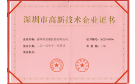 • Shenzhen high-tech enterprise certificate